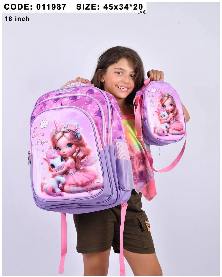 🎒 شنطة مدرسية بناتي من Momolly – مقاسات 16.5 و 18.5 بوصة